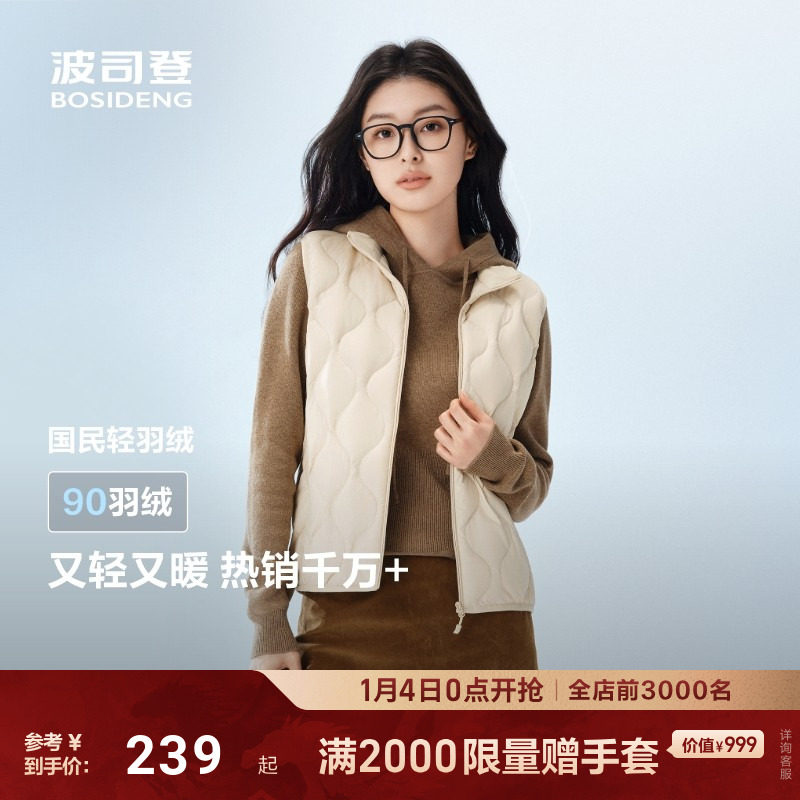 波司登2025新款羽绒背心女立领保暖亲肤【三防】羽绒马甲时尚短款