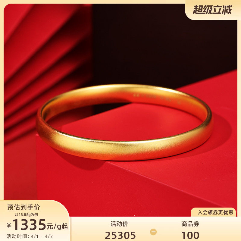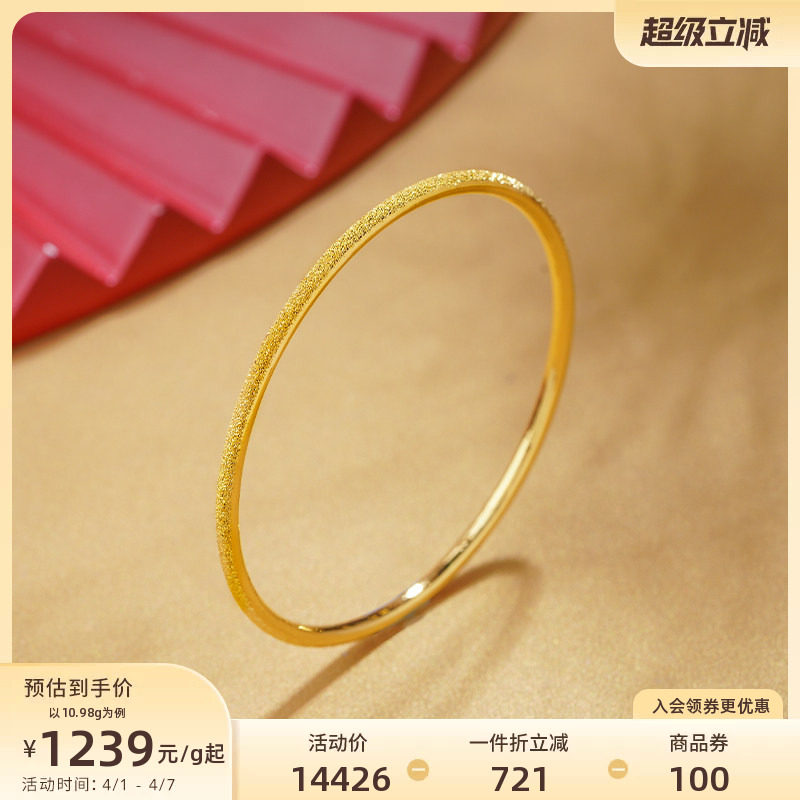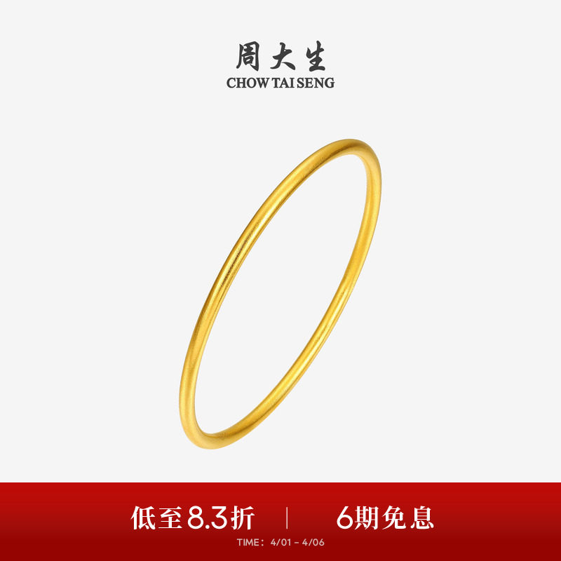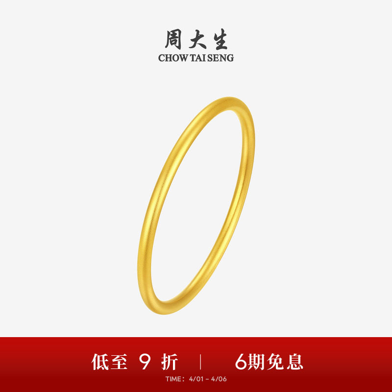 周大生黄金手镯女5G足金光面素圈手饰钻纹金镯子生日礼物送女朋友