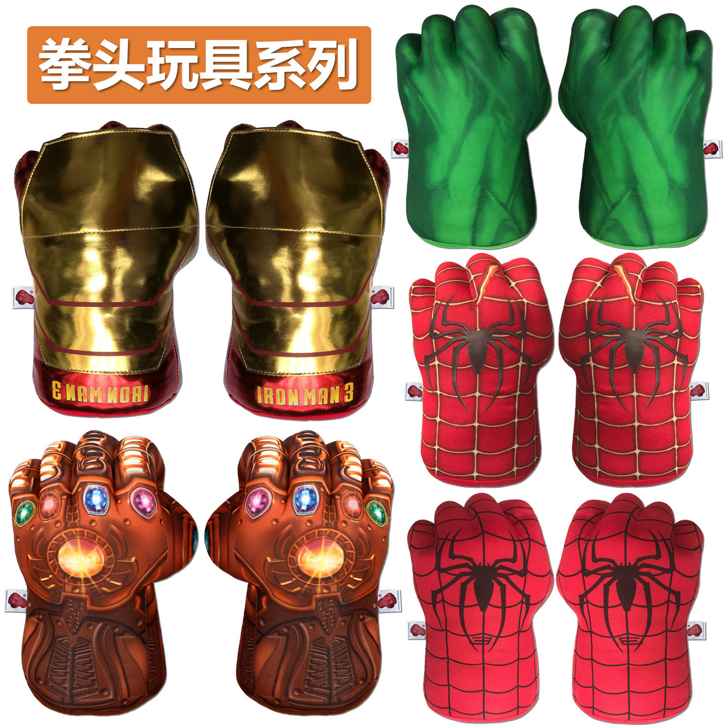 蜘蛛侠拳套绿巨人拳击灭霸手套毛绒玩具钢铁侠玩偶美国队长动漫布