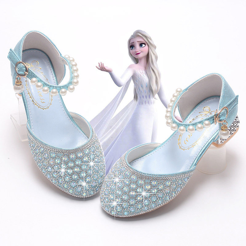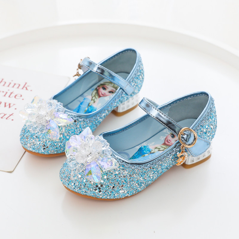 女童艾莎水晶鞋高跟鞋冰雪奇缘公主鞋2025小学生闪亮单鞋生日鞋