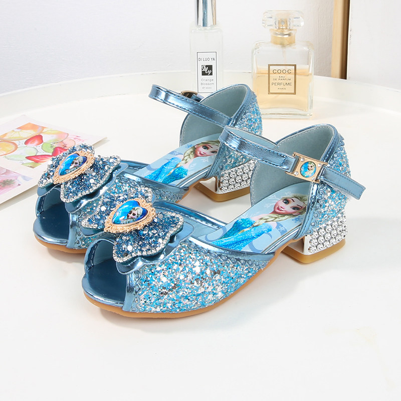 女童艾莎公主鞋2025冰雪奇缘水晶鞋高跟新款洋气闪亮演出鞋魔术贴
