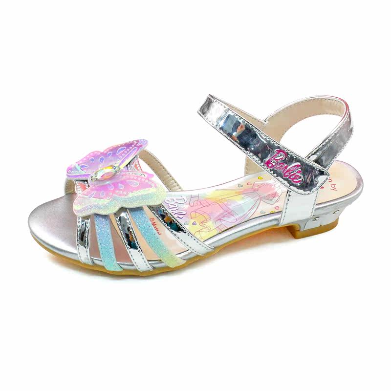 洋气儿童拖鞋爱莎公主鞋水钻蝴蝶女童凉拖鞋银色水晶鞋高跟女孩子