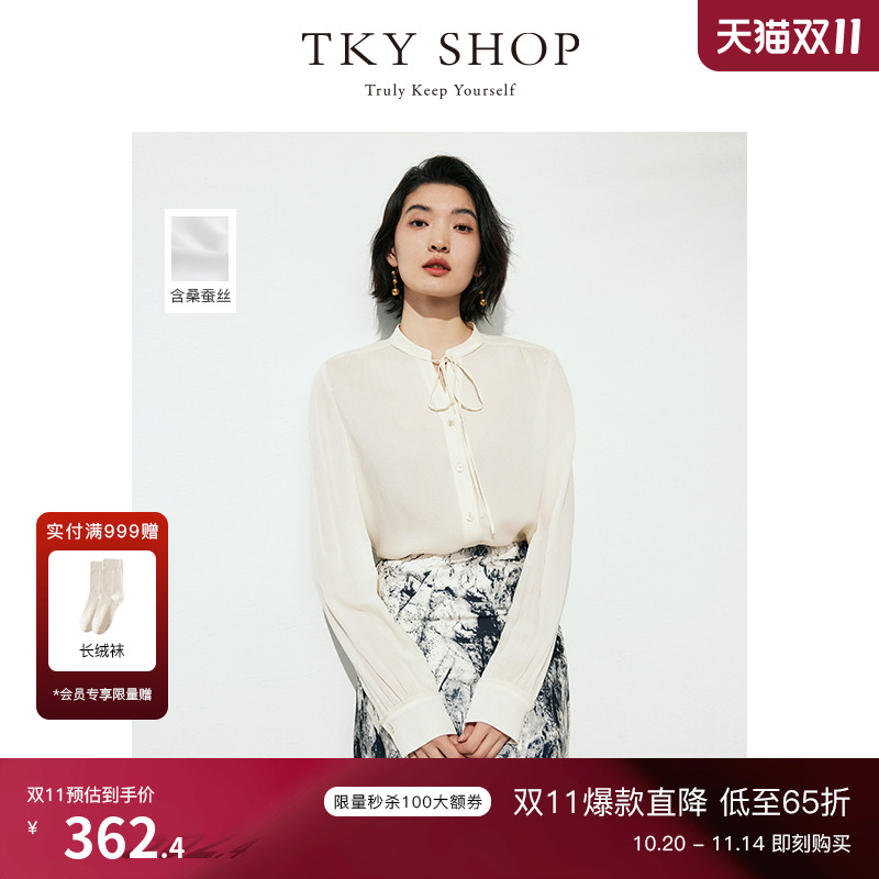 [100%桑蚕丝]TKY SHOP新中式真丝上衣夏新品时尚优雅通勤系带衬衫