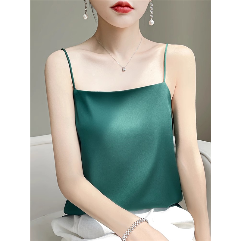 桑蚕丝吊带背心女西装内搭秋季打底真丝上衣V领缎面夏季外穿百搭