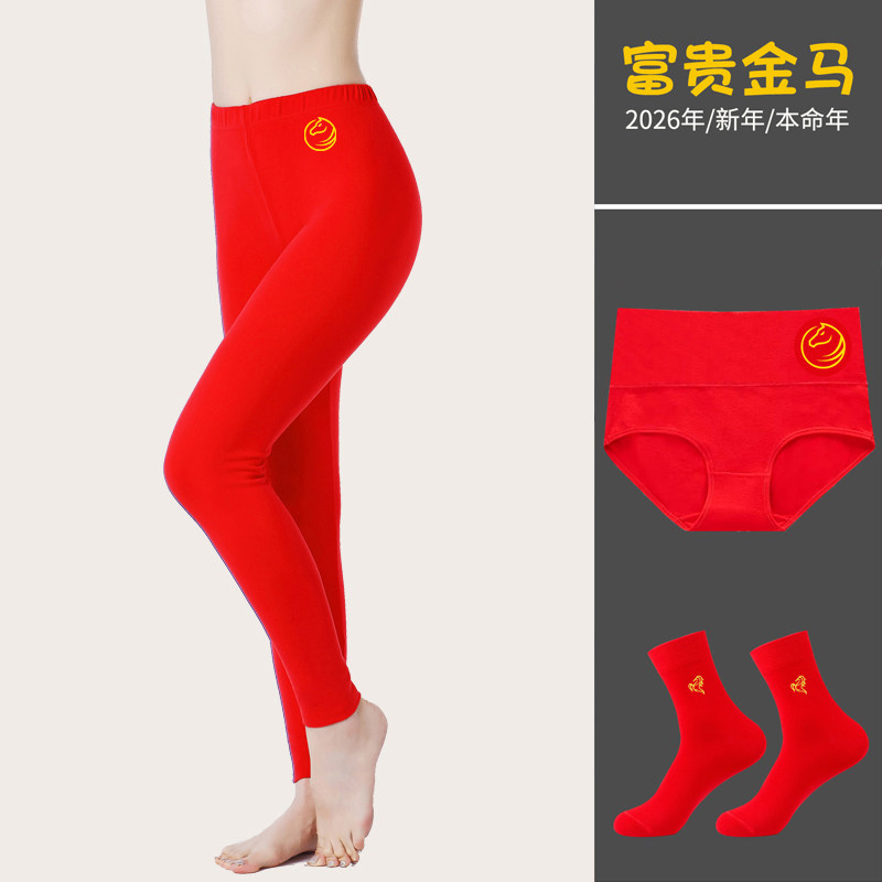 马年本命年女士秋裤大红色纯棉单件高腰秋冬打底薄款保暖线裤内衣