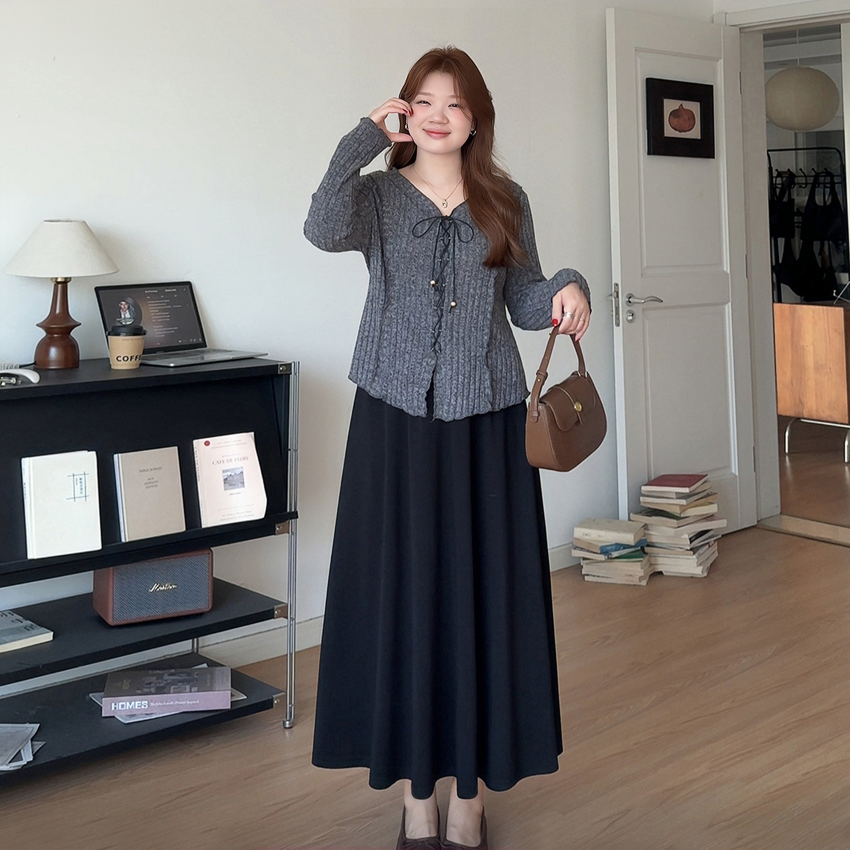 时然大码女装胖mm时髦套装高级感2026春秋新款显瘦连衣裙针织开衫