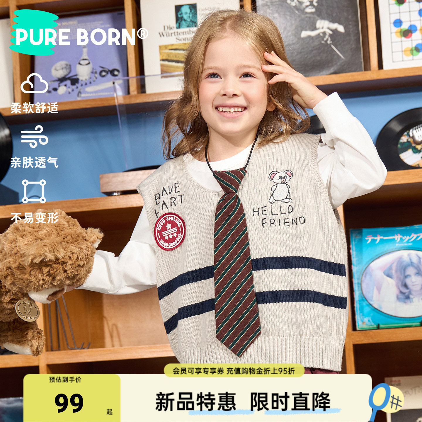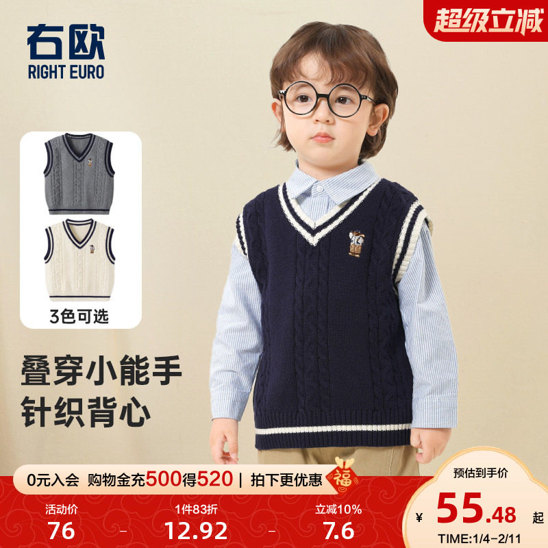 【叠穿神器】博睿恩儿童毛衣马甲2026春新款男女童学院风针织背心