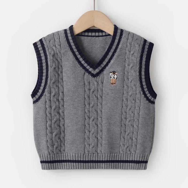 天天向上外贸店2025春秋韩版男童学院风针织背心V领棉质马甲毛衣