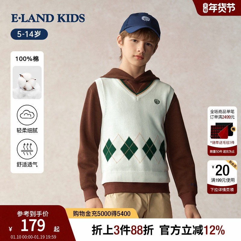eland kids衣恋童装男童女童马甲2025年秋新品休闲学院风针织背心