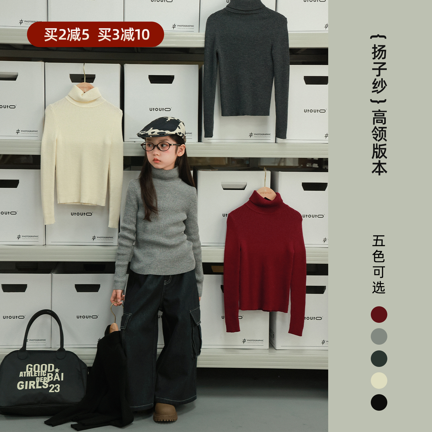 utouto大耳象女童扬子纱高领纯色毛衣2025冬季新款宝儿百搭厚上衣