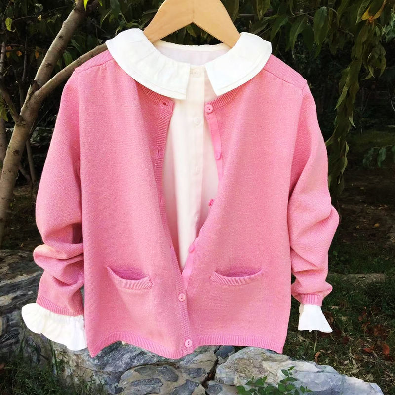 法国外贸女童毛衣纯色长袖开衫外套超柔时尚可爱欧美洋气宝宝上衣