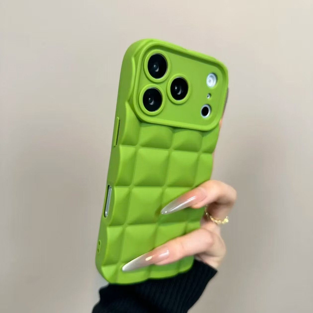 适用IPhone16/17promax纯色简约莫兰迪立体格子手机壳防摔苹果17/16/15pro高级感ins风16/15/14/13软壳保护套