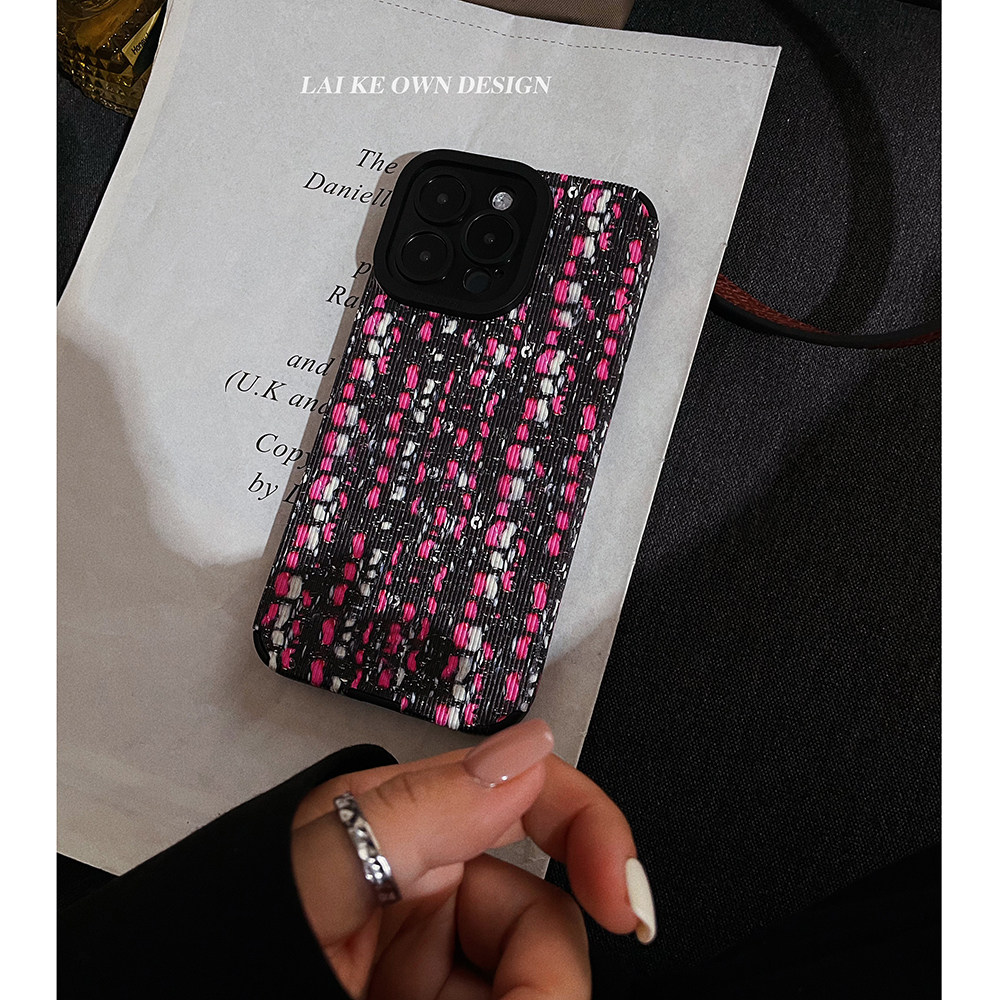 丝绒玫瑰~原创小香风气质简约格子手机壳适用苹果15/14/12防摔软壳小米13华为p50荣耀90mate60全包精孔