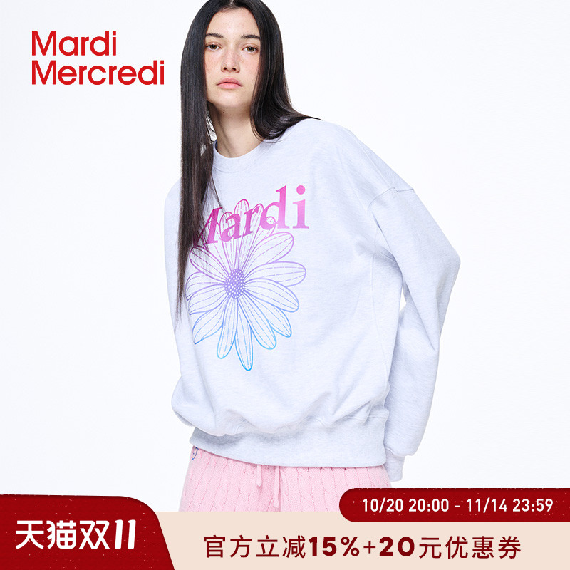 MardiMercredi小雏菊渐变字母印花圆领韩系休闲宽松卫衣男女同款