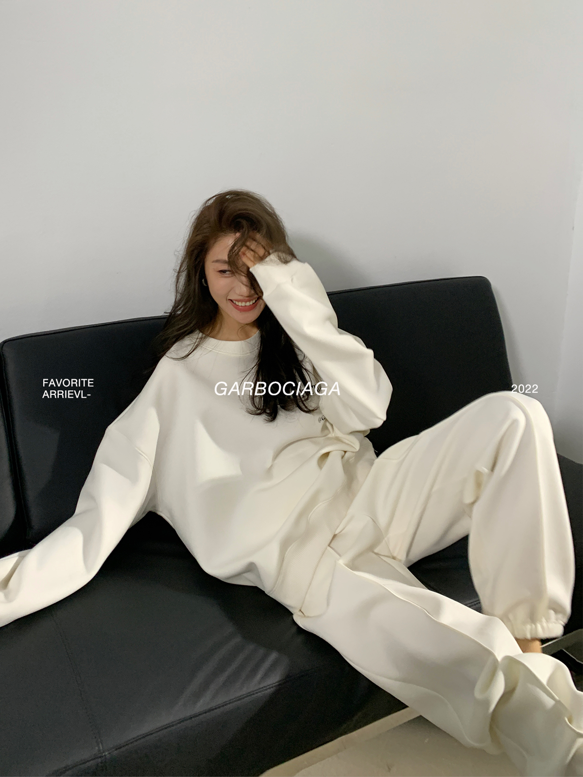 Garbociaga龙喜儿 慵懒范儿 白色绵软男女休闲卫衣运动套装女9205