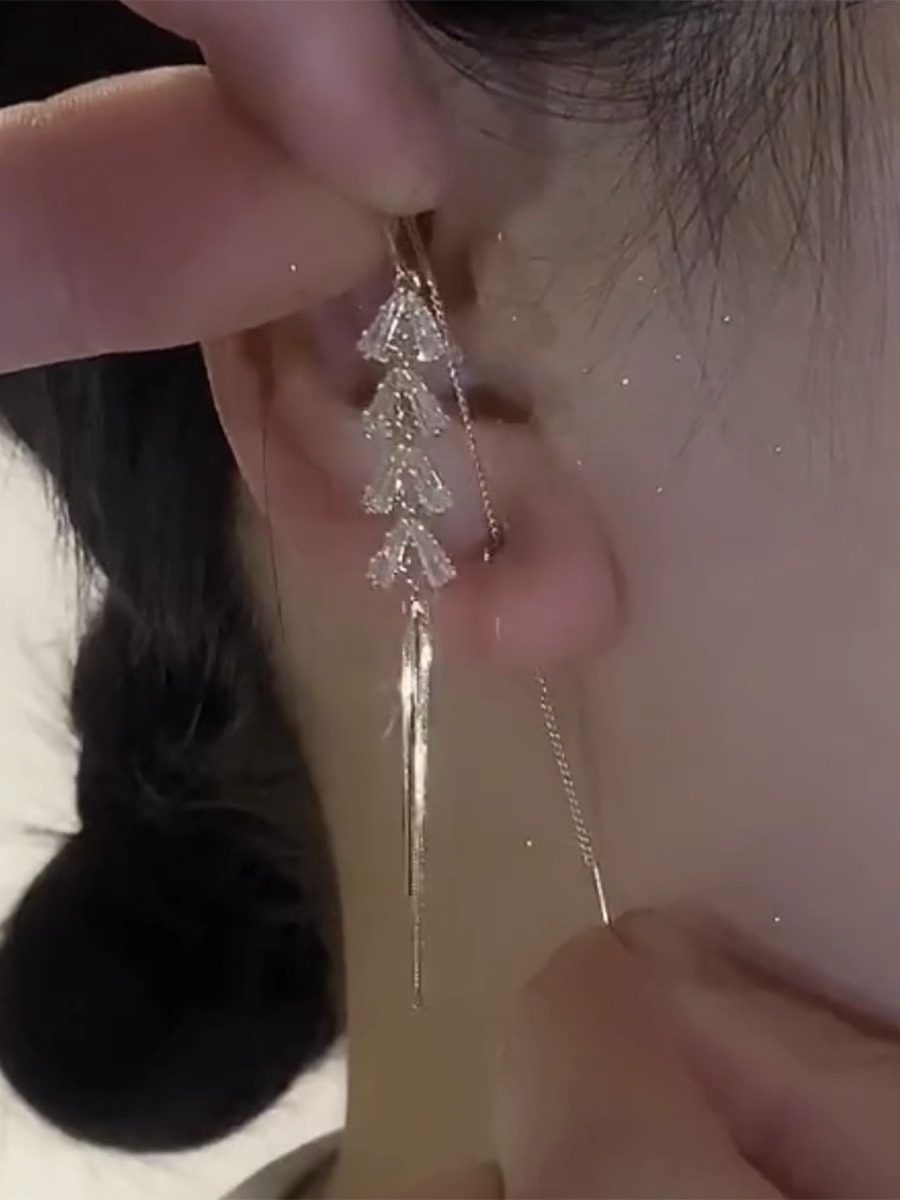 东大门时尚锆石麦穗耳线长款超仙流苏树叶耳环高级感气质轻奢耳饰