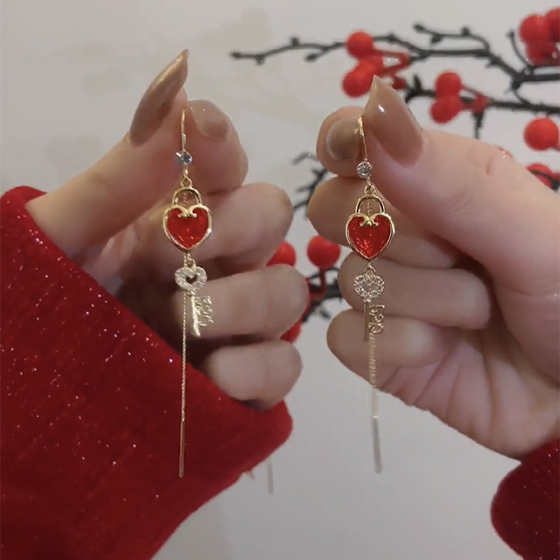 日韩高级感红色爱心520耳线长款流苏耳环女网红抖音爆款气质耳饰