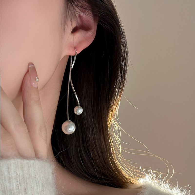 Z小姐925纯银珠珠流苏耳线长款小众耳环2025新款爆款气质耳坠耳饰