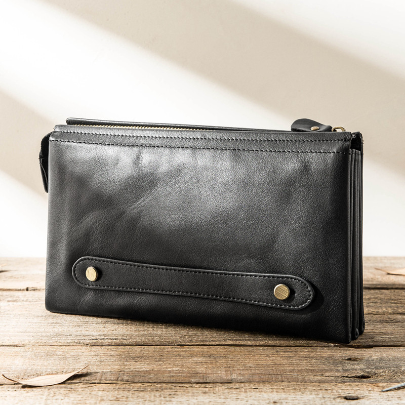 男士真皮长款钱包多功能休闲软皮手拿包男头层牛皮手抓包手机包潮