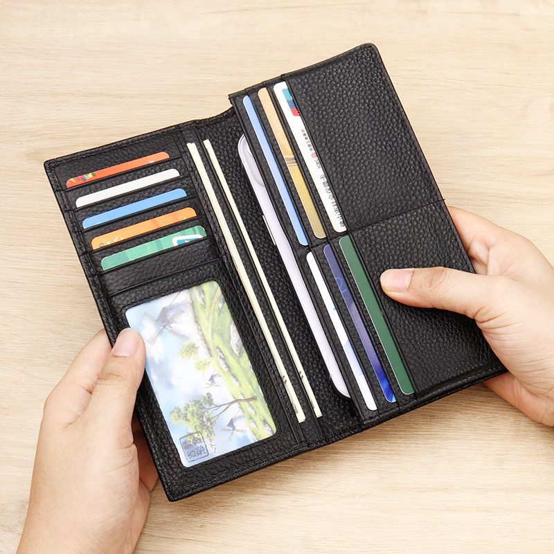 现货男士真皮长款钱包多卡位跨境卡包头层牛皮亚马逊代发1008