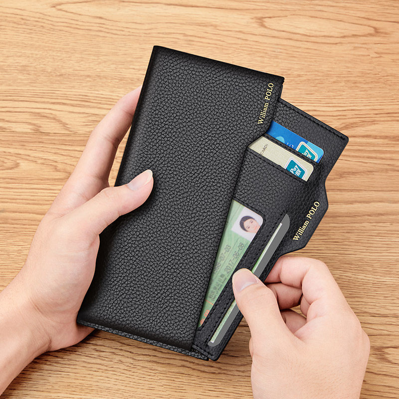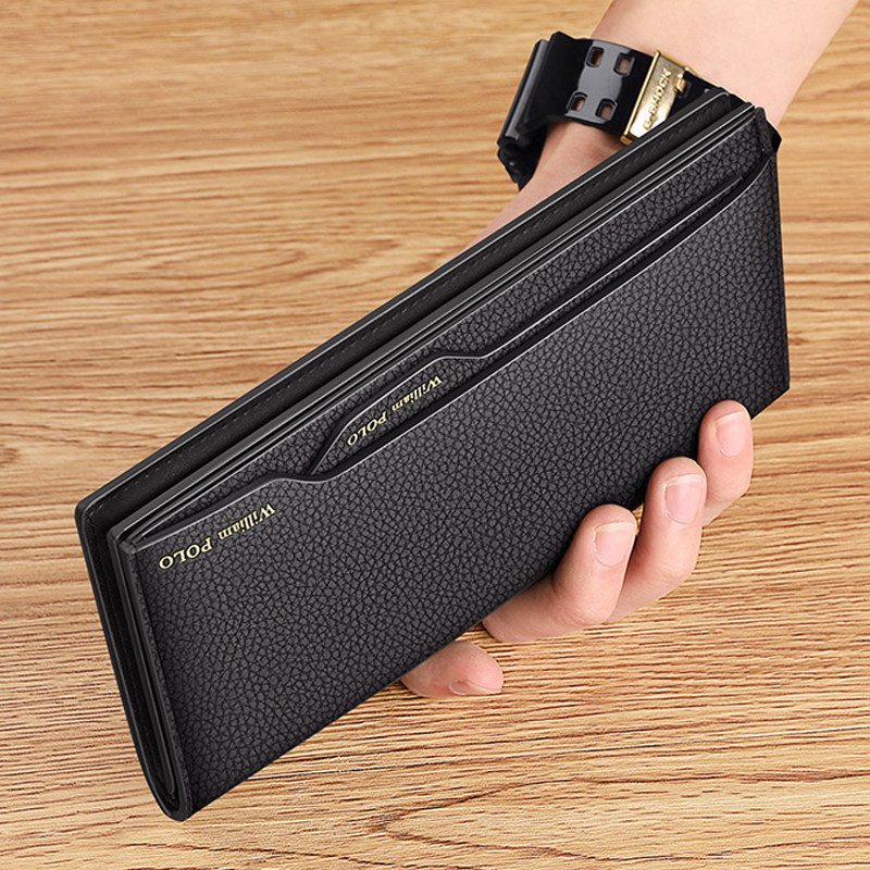 Williampolo男士真皮长款钱包多卡位含拨插驾照套防盗刷手机卡包