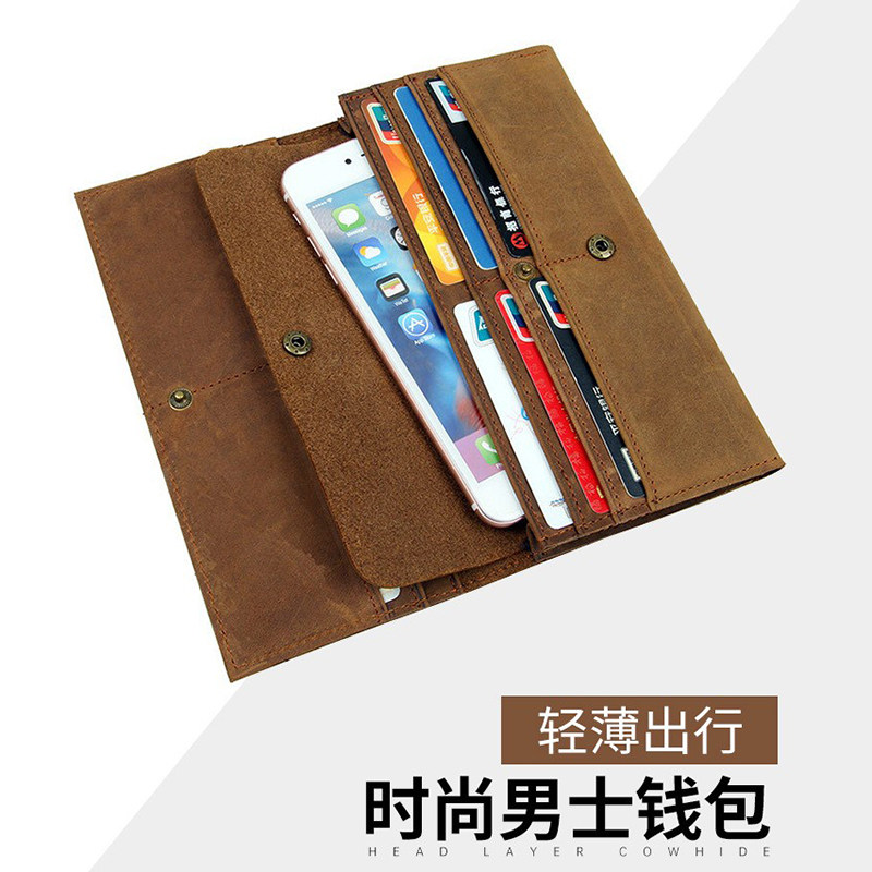 日本原单 新款女式油蜡纹牛皮长款钱包 学生真皮男士手拿包长钱包
