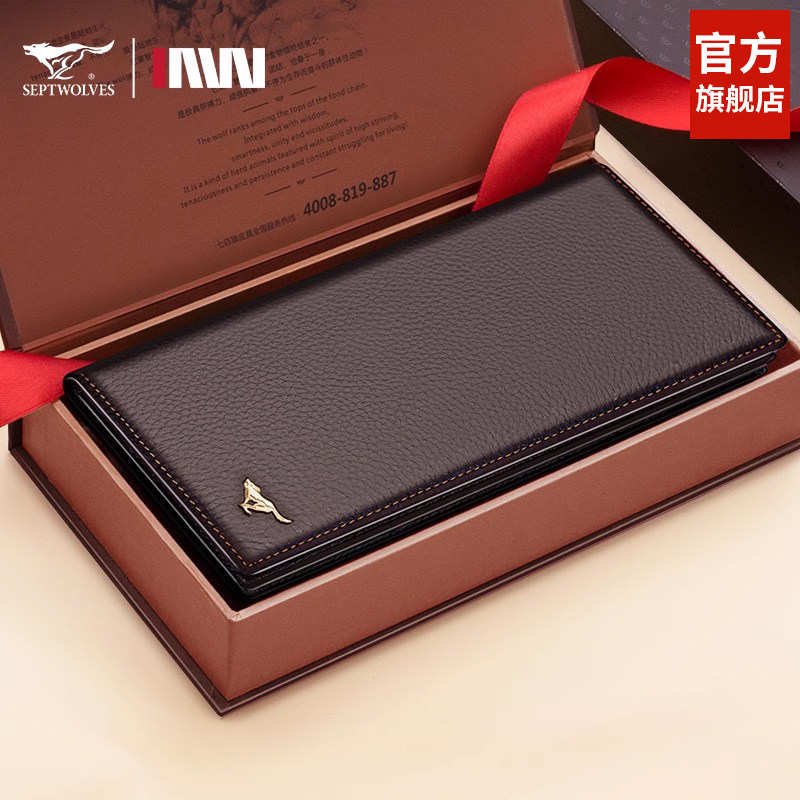 七匹狼男士真皮长款钱包青年头层牛皮2026父亲生日礼物老公薄皮夹