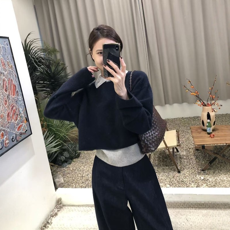 AMOR禾末“半日闲”重磅羊毛马海毛混纺慵懒针织衫毛衣背心两件套