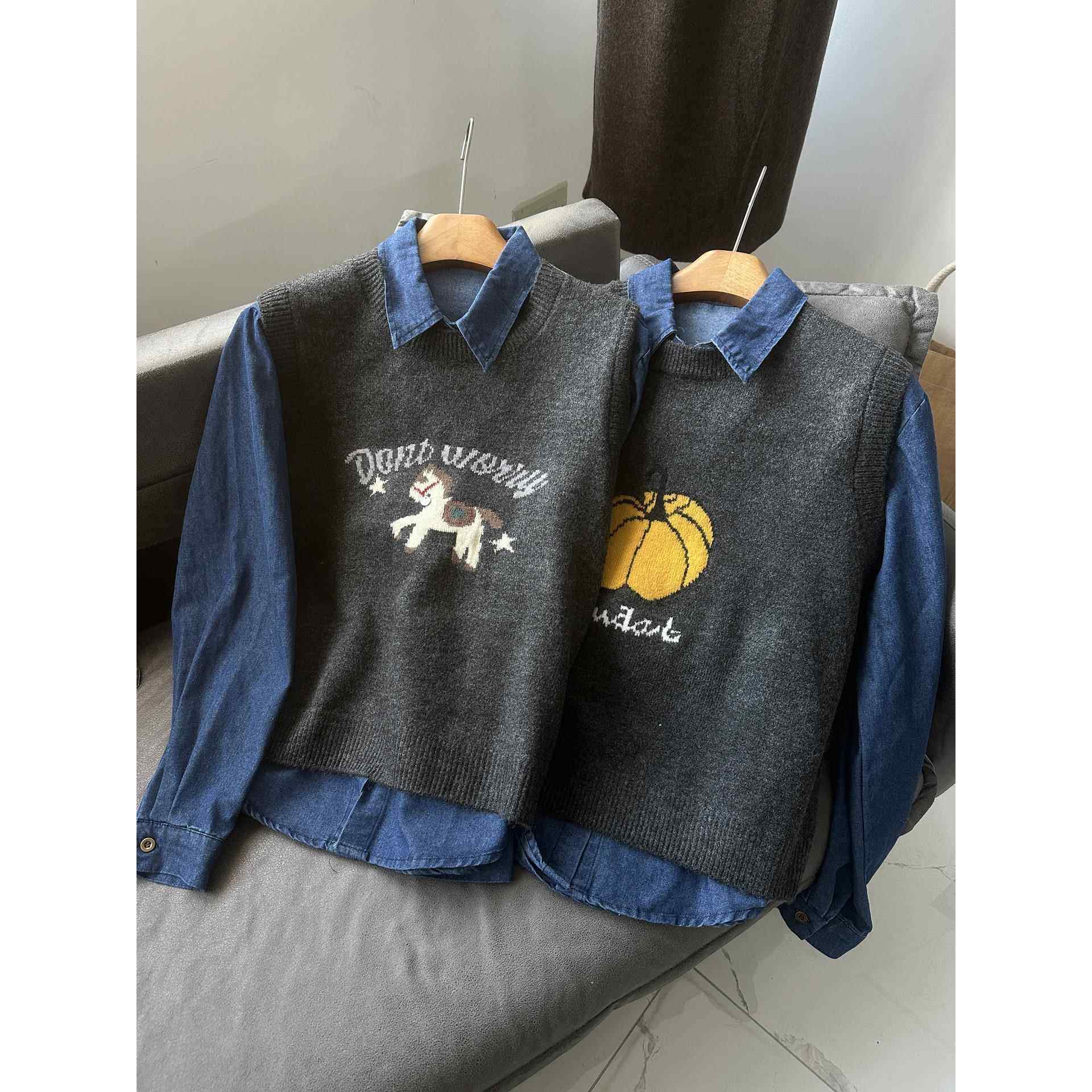 【衬衣+毛衣背心两件套】韩版学院减龄风无袖背心马夹牛仔衬衣潮