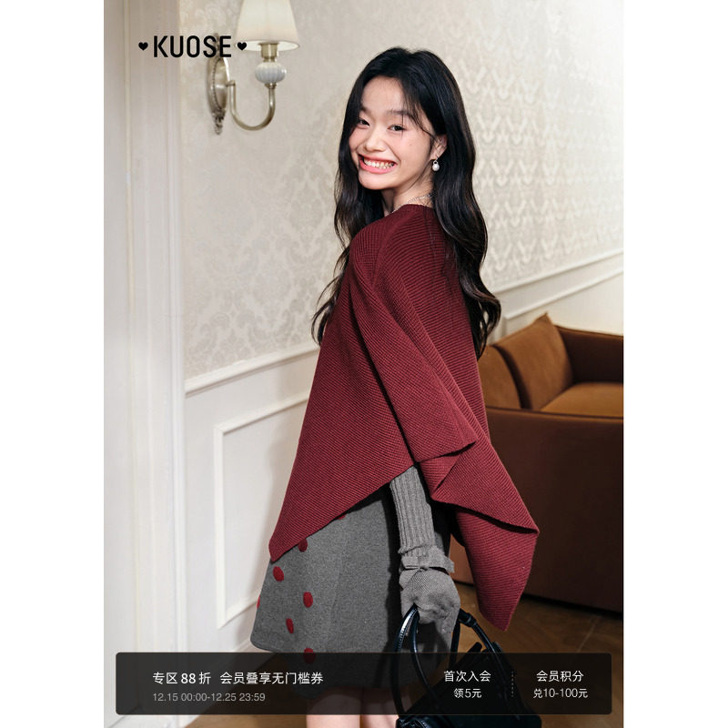 阔色斗篷毛衣背心裙连衣裙两件套装25秋冬季女外套披肩红色裙子新