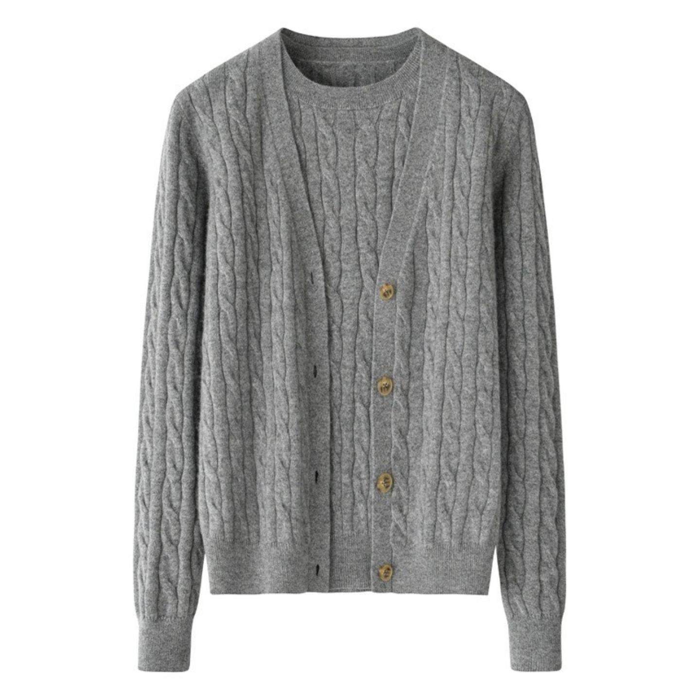 普洛克正品 秋冬山羊绒套装女v领复古麻花针织毛衣背心两件套外套