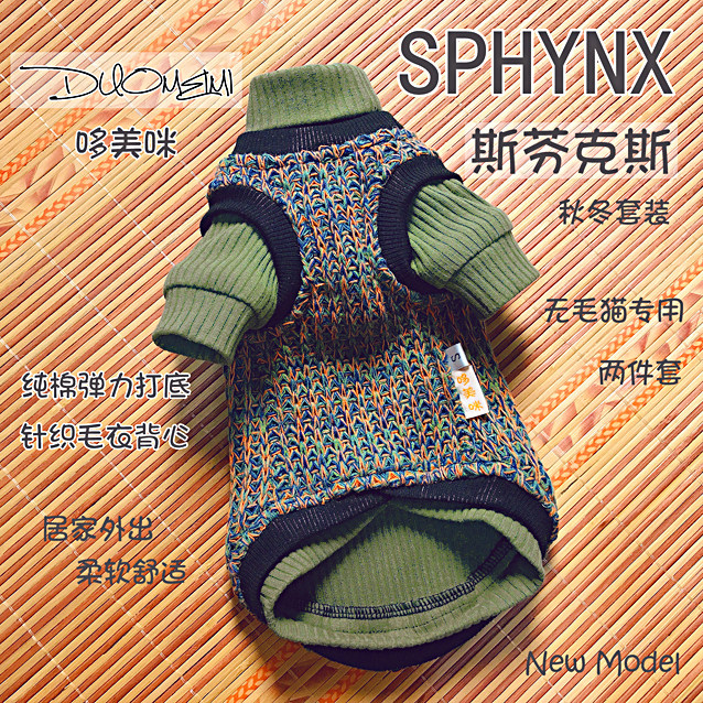 斯芬克斯 无毛猫 宠物猫 秋季 纯棉高领打底针织毛衣背心两件套装