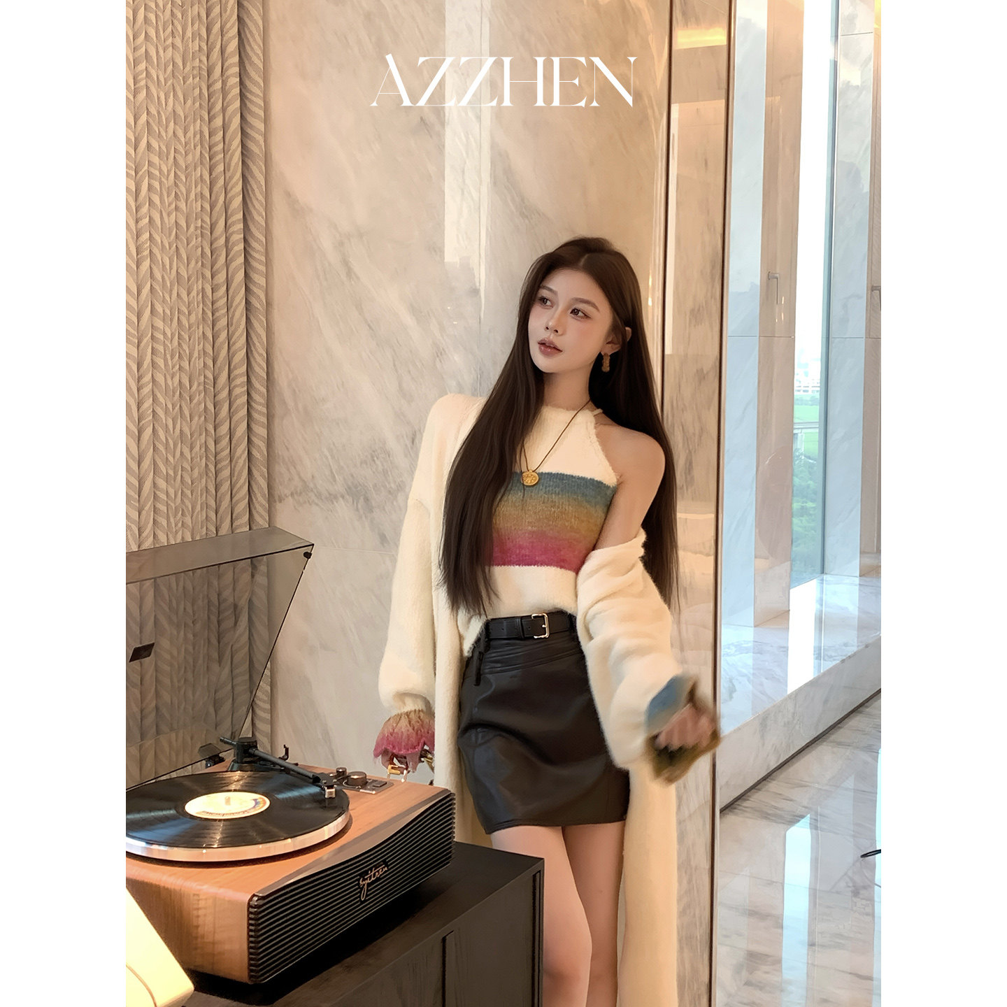 AZZHEN【彩虹秘境】慵懒风设计感彩色毛衣背心两件套开衫外套女