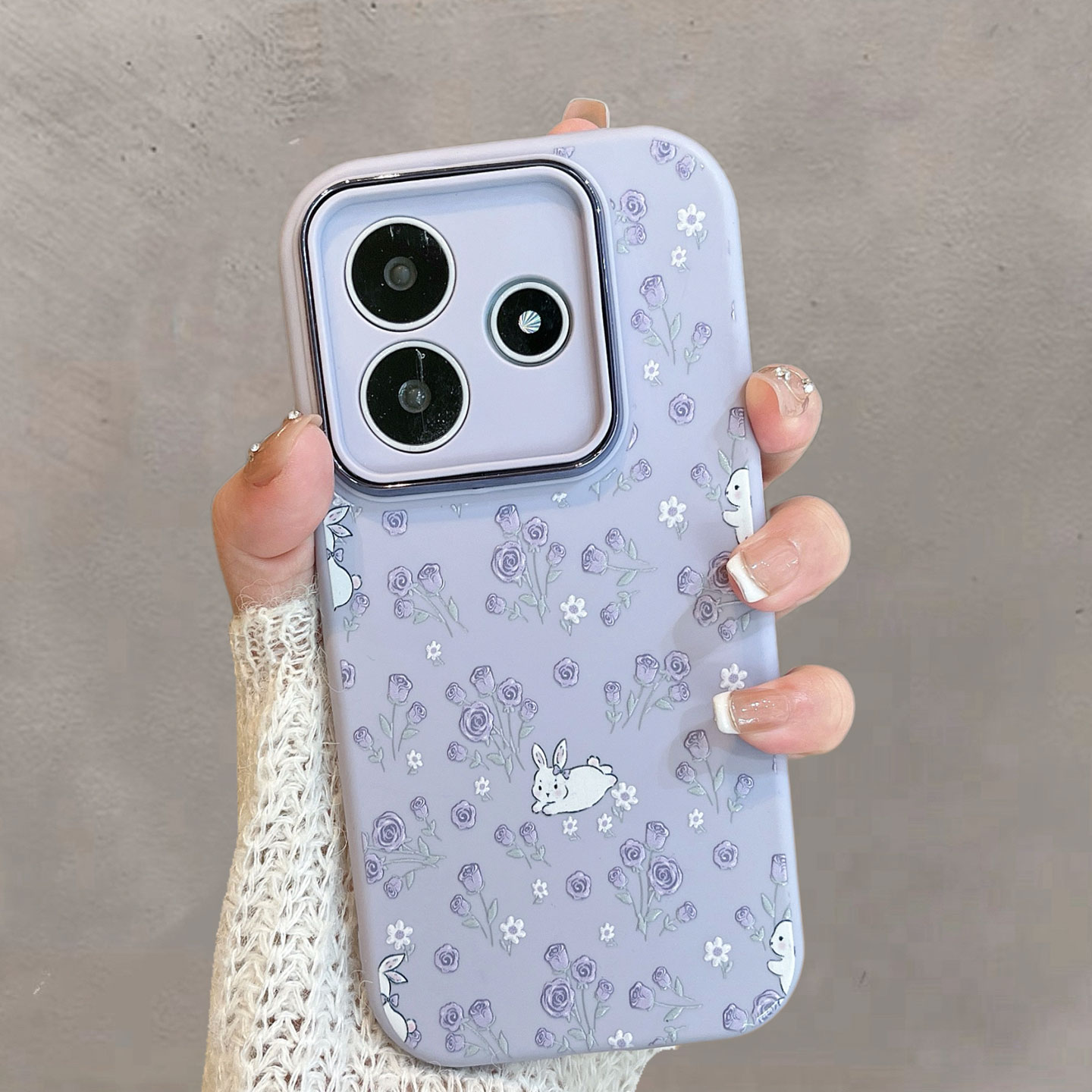 适用于红米note14手机壳紫色小清新小米24094RAD4C花朵redminote145g可爱5g兔子red米noto十四全包n14防摔not