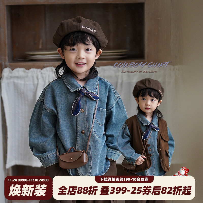 砚台家童装痞帅儿童牛仔衬衫男女童衬衣中小童外套宝宝上衣春秋款