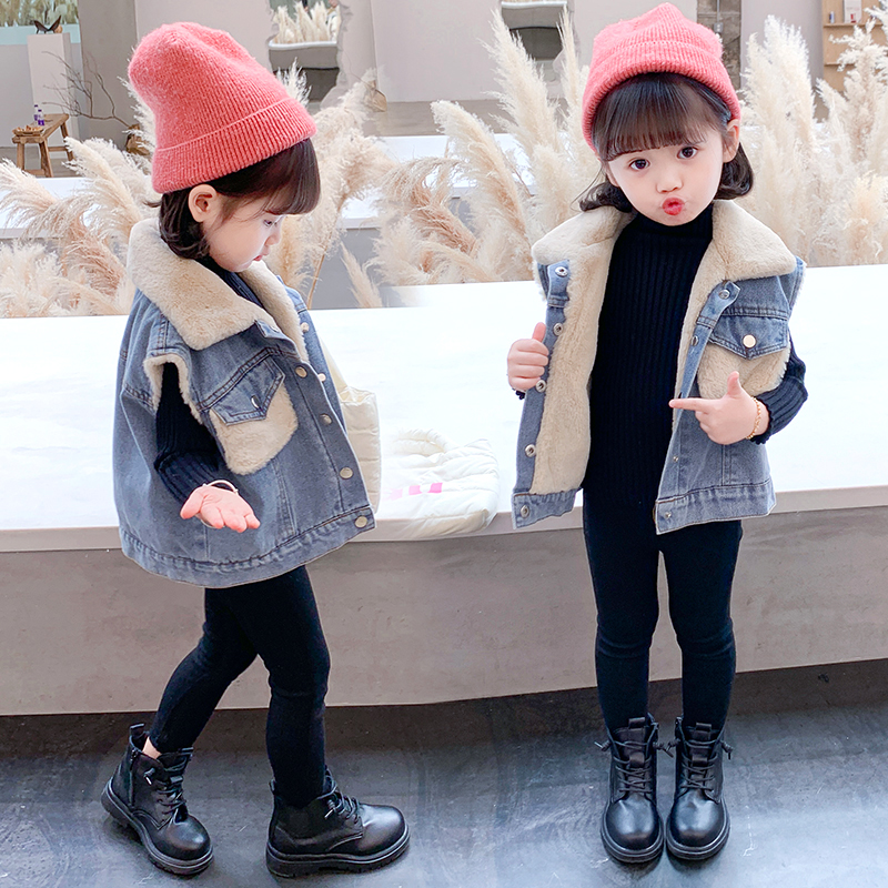 女童2023新款秋冬装马甲儿童加绒加厚洋气外穿马夹宝宝牛仔外套秋