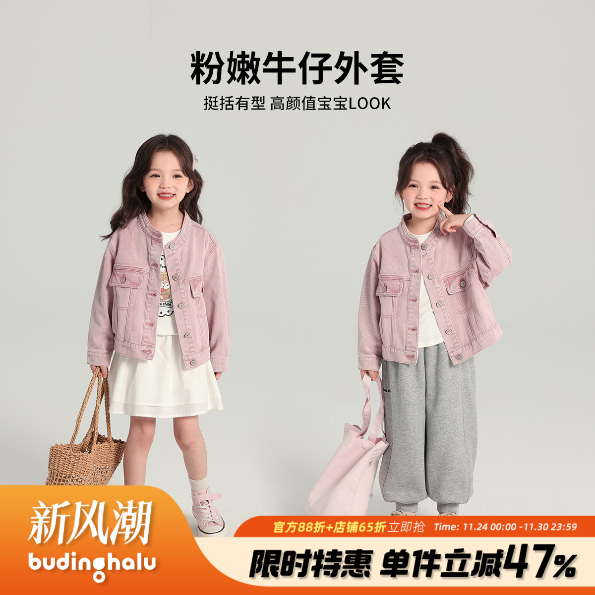 布丁哈鲁童装春装女童上衣2025春秋新款儿童甜美洋气粉色牛仔外套
