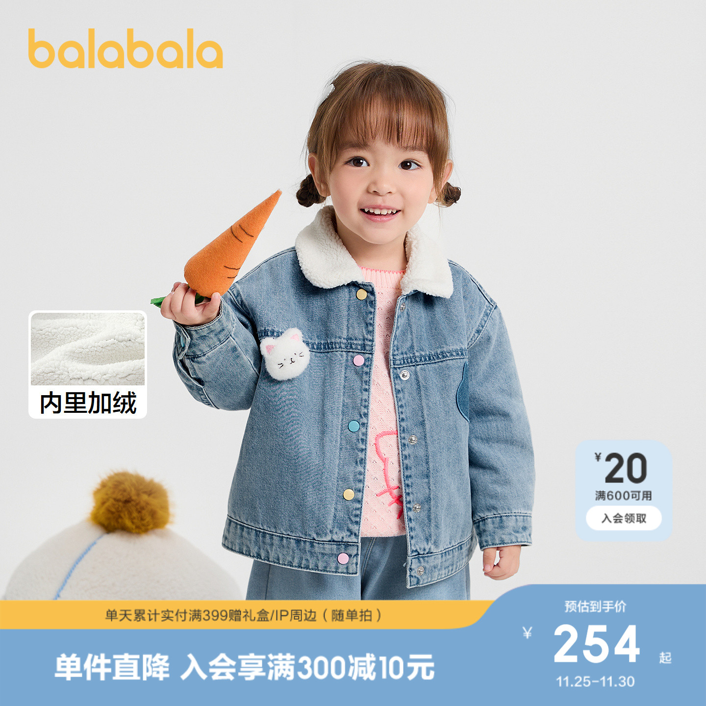 【商场同款】巴拉巴拉童装女童牛仔外套加绒秋冬2025新款毛领上衣
