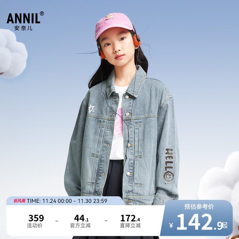 安奈儿童装男童女童牛仔外套2025春新款纯棉休闲透气宽松弹力
