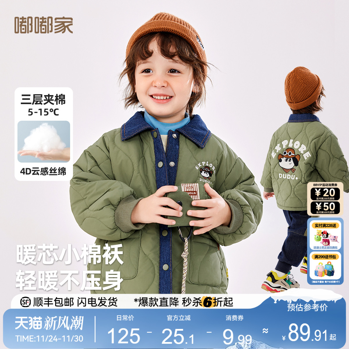 嘟嘟家男童棉服秋冬儿童牛仔拼接外套上衣冬宝宝棉袄冬季童装棉衣