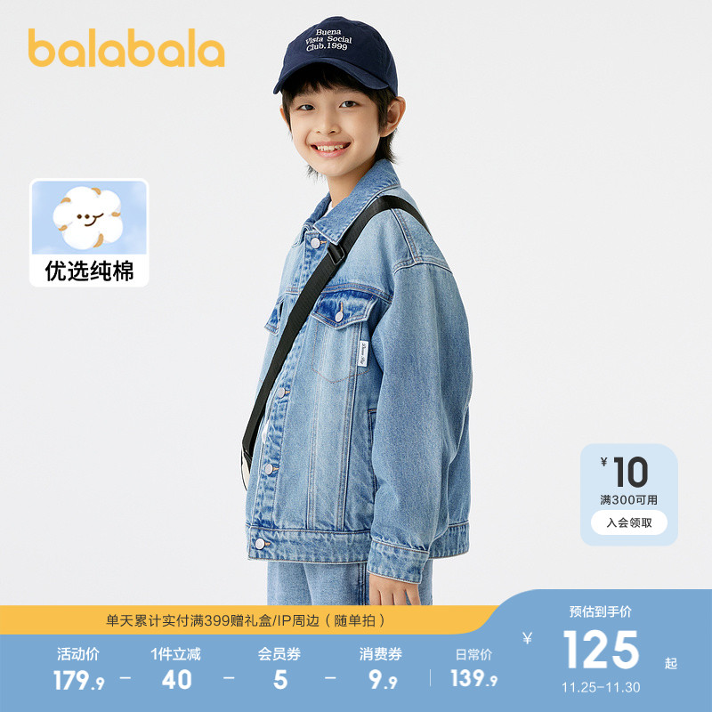 巴拉巴拉童装儿童外套男童秋装2025牛仔上衣潮百搭大童牛仔衫潮酷