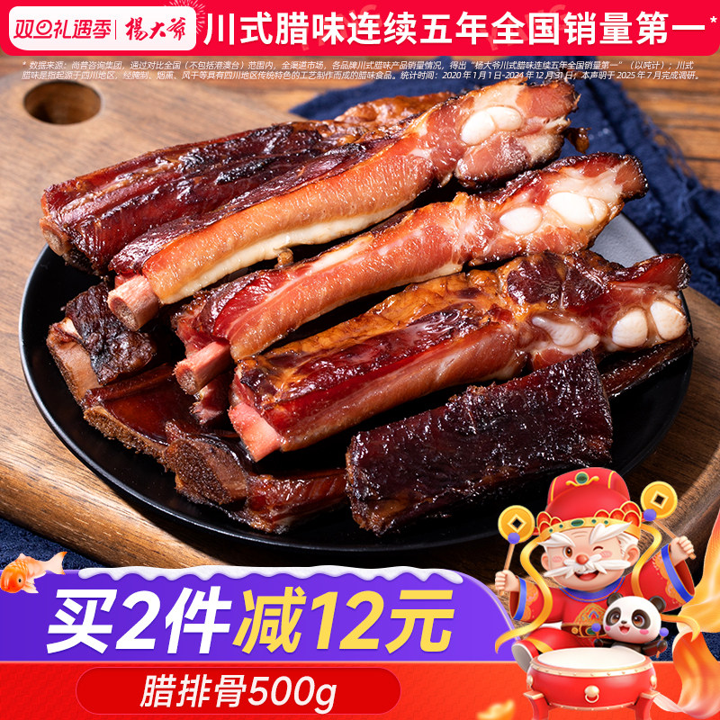 杨大爷腊排骨普排500g四川特产腊肉猪前排骨柴火烟熏农家自制腊味