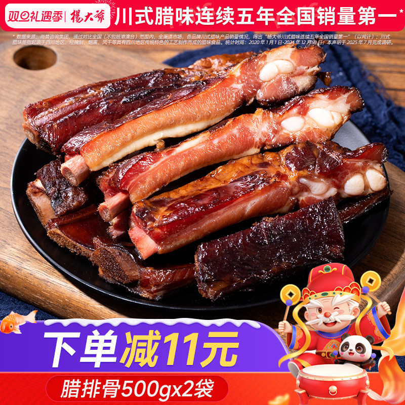 杨大爷腊排骨普排500gx2袋农家自制猪前排骨柴火烟熏四川特产腊肉