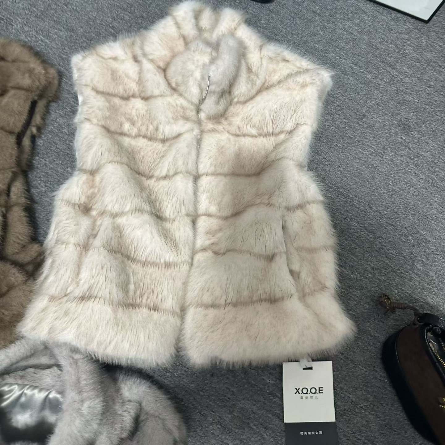 欧货丹麦貂毛混纺名媛显瘦皮草毛毛背心马甲外套上衣女装2023秋冬