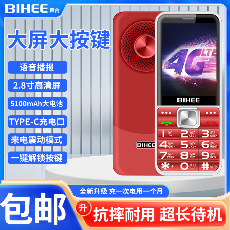 BIHEE百合A26全网通4G老人手机电信Volte通话HD老年大屏超长待机