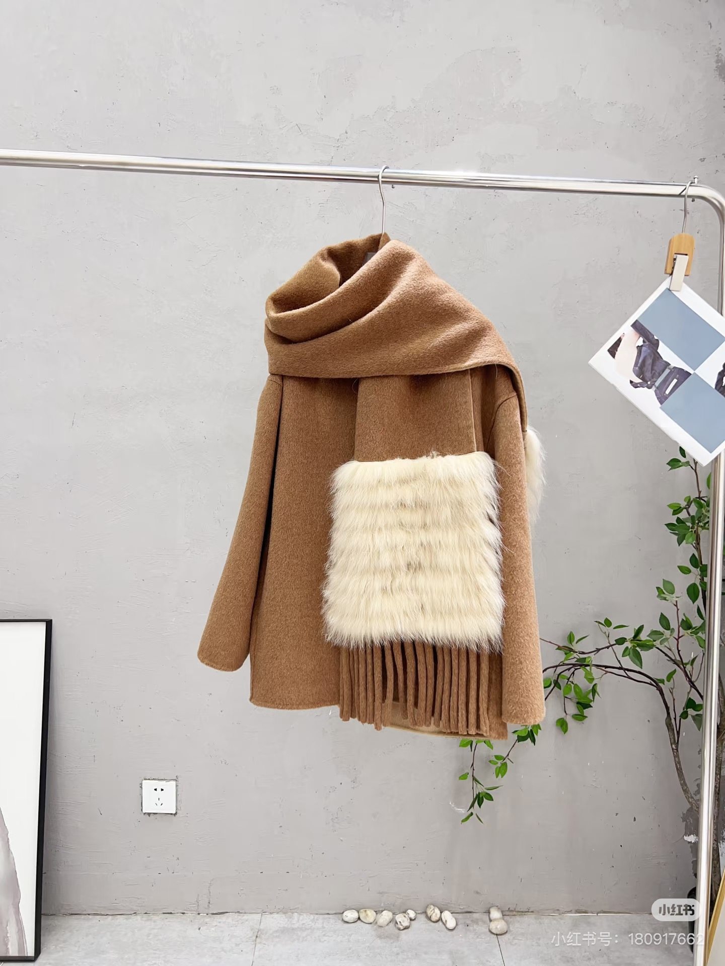 2025网红同款双面羊绒大衣女韩版宽松显瘦羊毛外套女拼狐狸毛围巾