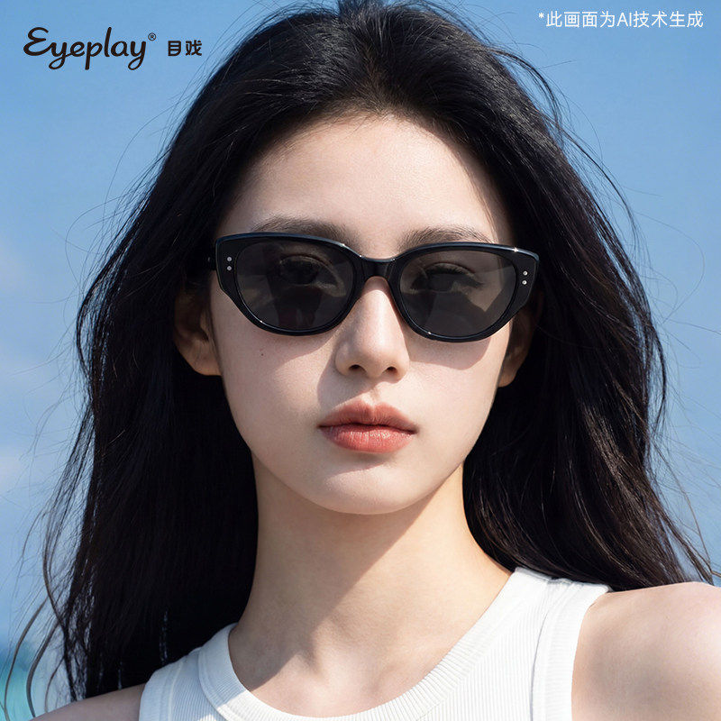 目戏新款猫眼墨镜女高级感近视太阳镜可配度数户外防紫外线41006S