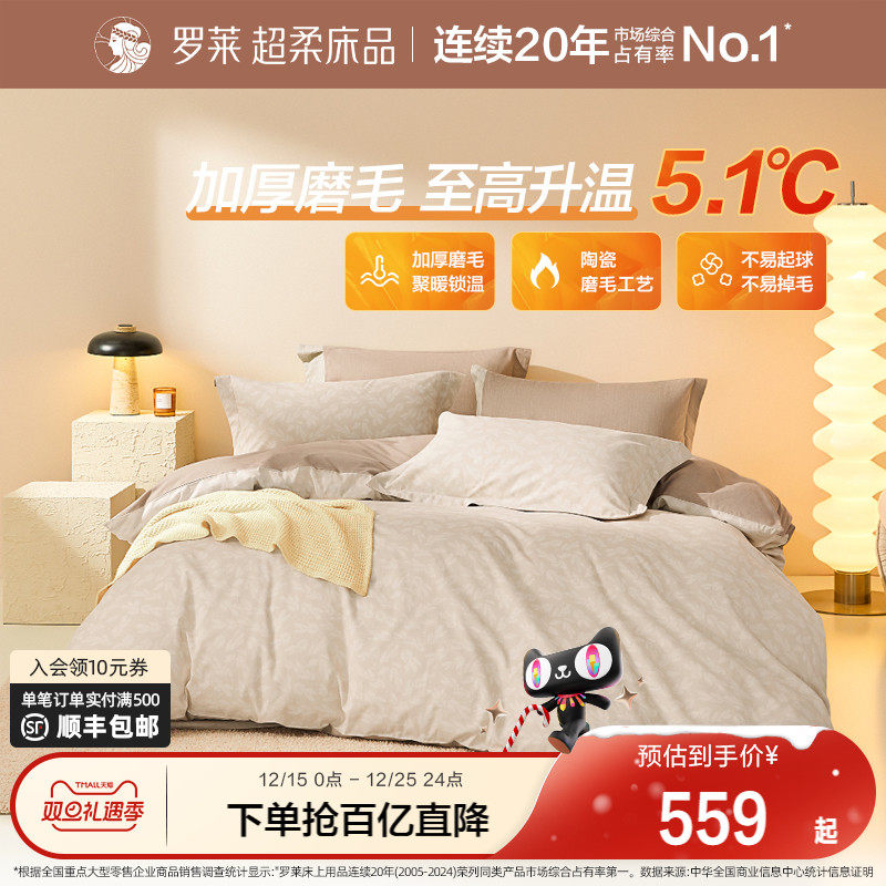 罗莱家纺床上用品套件宿舍全棉纯棉加厚磨毛床单被套双人床四件套