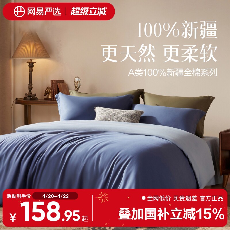 网易严选纯棉四件套100全棉学生宿舍床单被套双人被罩床上3件套
