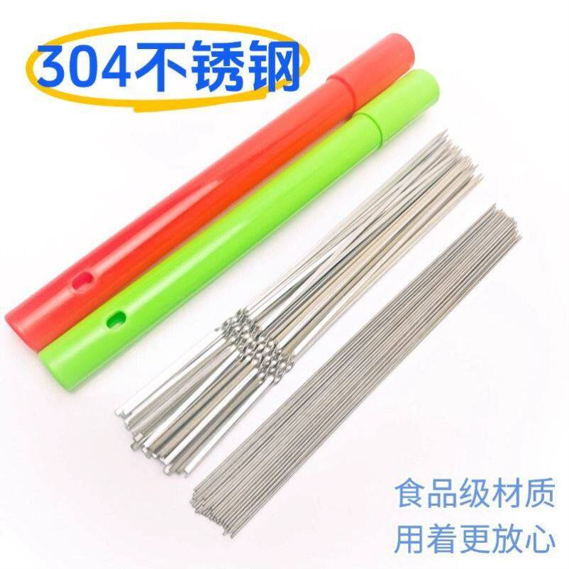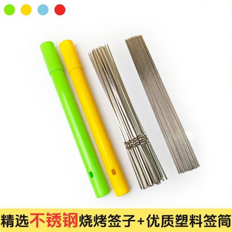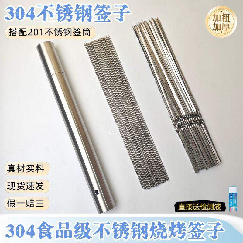 304不锈钢烧烤签子食品级扁签圆签签筒钢签收纳桶烧烤工具全套